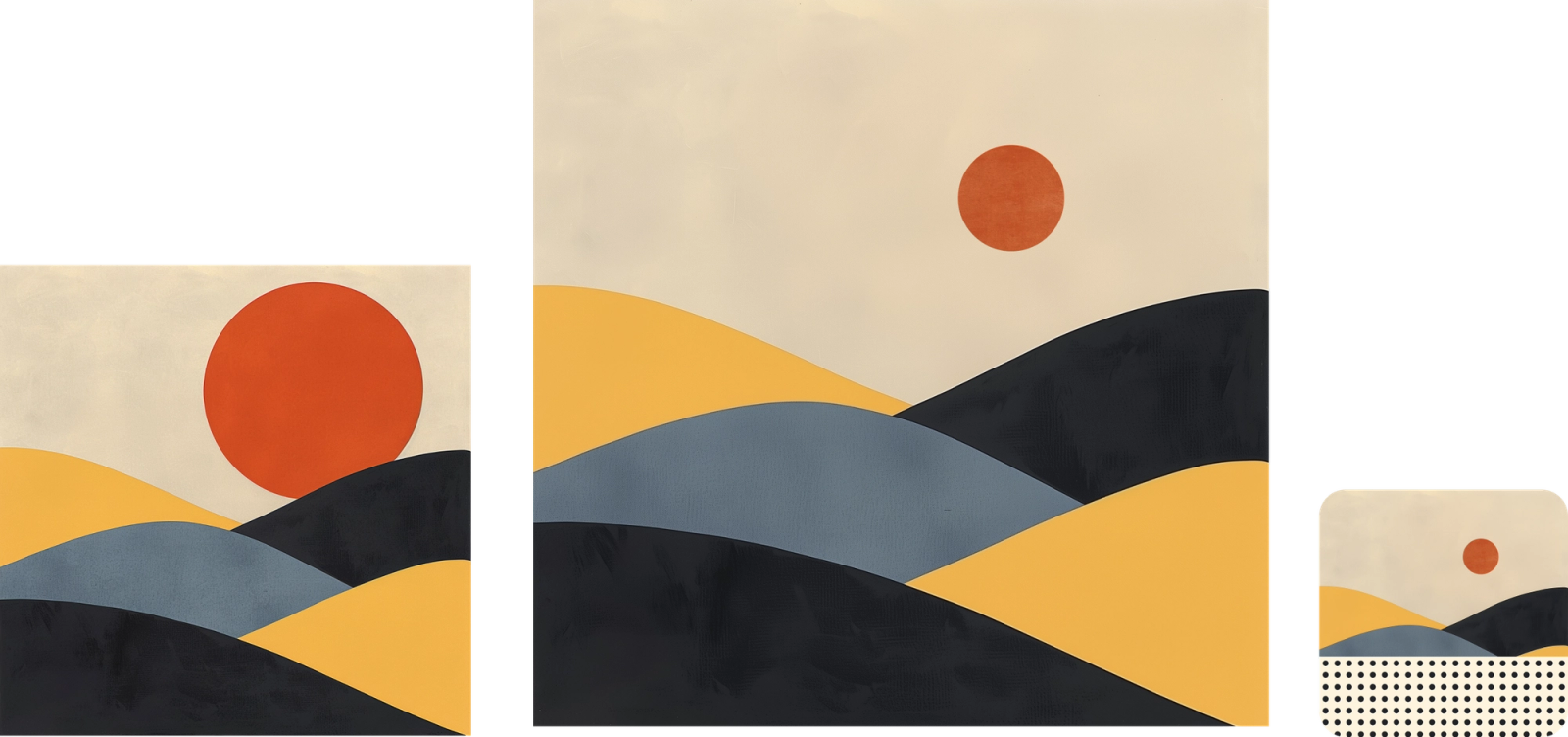 As the Bauhaus references met up with my idea for how to picture images res-ing in as a loader in my head, I turned to Midjourney to do a task I might have previously accomplished by making a vector illustration and applying a texture. This was just quicker, and it randomized the eventual result in only the smallest way - the extra interweaving of the hills recalls the source reference, and I might have dropped it for simplicity.